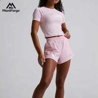 MontForge women's light pink 2-piece active set: cropped tee and high-waisted shorts for workouts.
